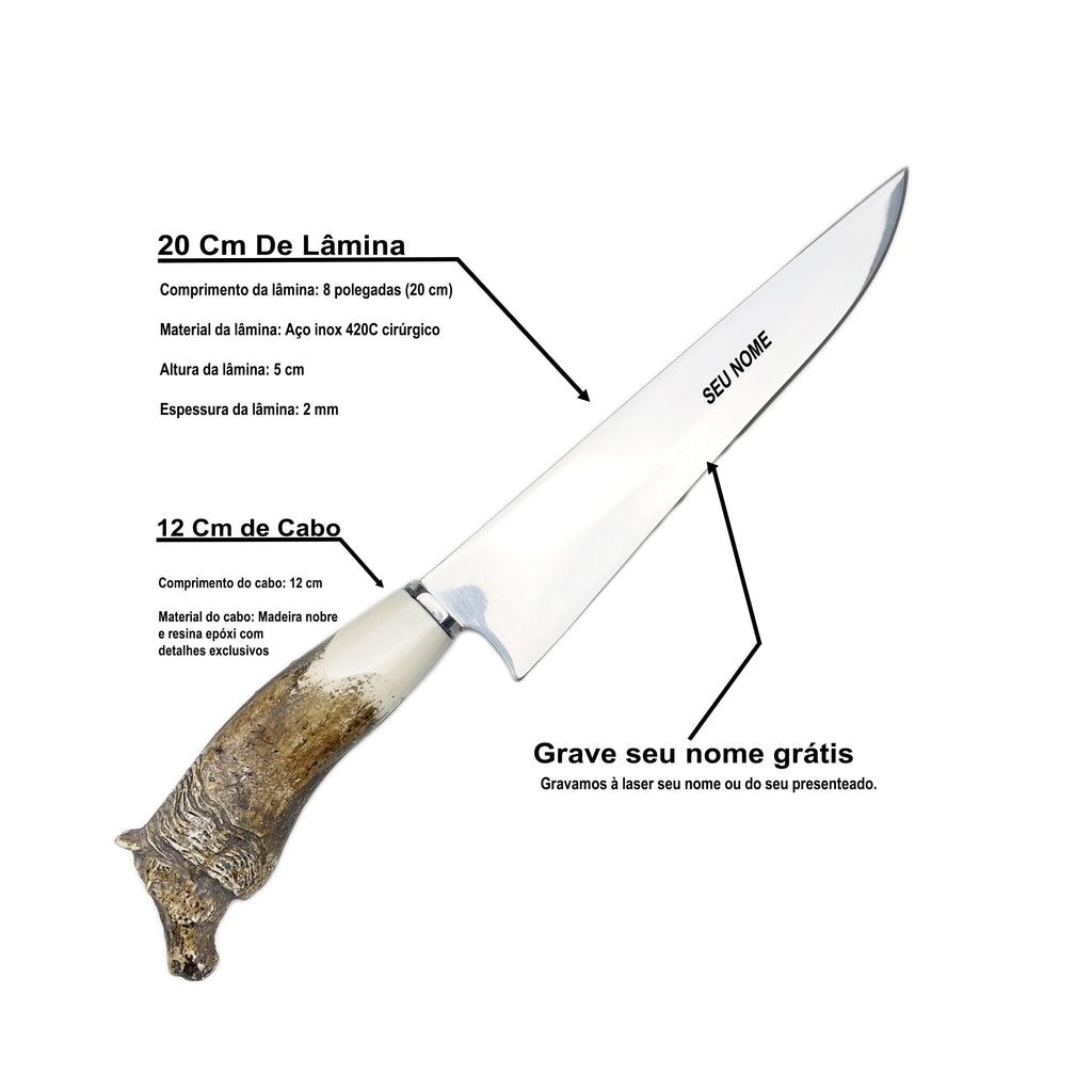 Personalização Exclusiva: Adicione um toque especial com a gravação do seu nome, tornando esta faca personalizada um item único e cheio de significado.